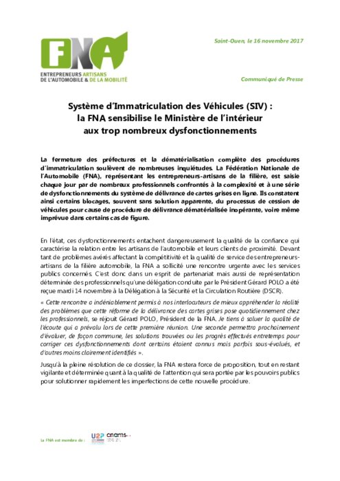 La fermeture des préfectures et la dématérialisation complète des procédures d'immatriculation soulèvent de nombreuses inquiétudes. La FNA, représentant les entrepreneurs-artisans de la filière, est saisie chaque jour par de nombreux professionnels confrontés à la complexité et à une série de dysfonctionnements du système de délivrance de cartes grises en ligne.