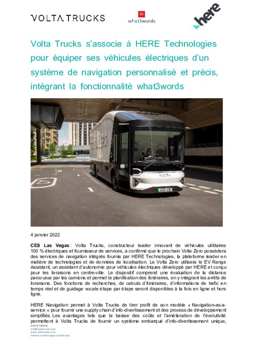Volta Trucks, constructeur leader innovant de véhicules utilitaires 100 % électriques et fournisseur de services, a confirmé que le prochain Volta Zero possèdera des services de navigation intégrés fournis par HERE Technologies, la plateforme leader en matière de technologies et de données de localisation. Le Volta Zero utilisera le EV Range Assistant, un assistant d’autonomie pour véhicules électriques développé par HERE et conçu pour les livraisons en centre-ville...