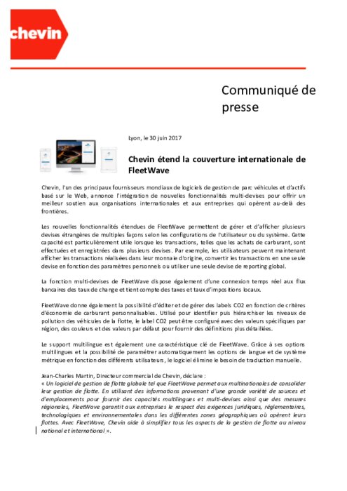 Chevin, l'un des principaux fournisseurs mondiaux de logiciels de gestion de parc véhicules et d'actifs basé sur le Web, annonce l'intégration de nouvelles fonctionnalités multi-devises pour offrir un meilleur soutien aux organisations internationales et aux entreprises qui opèrent au-delà des frontières.