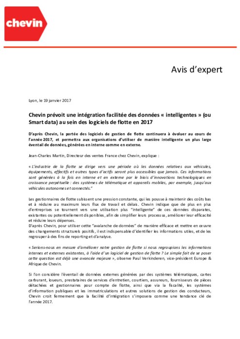 D’après Chevin, la portée des logiciels de gestion de flotte continuera à évoluer au cours de l’année 2017, et permettra aux organisations d’utiliser de manière intelligente un plus large éventail de données, générées en interne comme en externe.