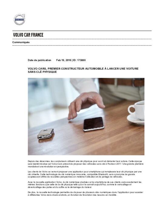 Depuis des décennies, les conducteurs utilisent une clé physique pour ouvrir et démarrer leur voiture. Cette époque sera bientôt révolue car Volvo prévoit de proposer des véhicules sans clé à l’horizon 2017. Une grande première mondiale et une révolution en perspective. Les clients de Volvo se verront proposer une application pour smartphone qui remplacera leur clé physique par une clé virtuelle.