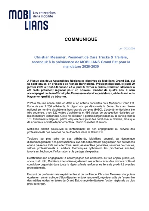 2025 a été une année riche en défis et en actions concrètes pour Mobilians Grand Est. Forte de ses 2 256 adhérents, la région occupe désormais la 5ème place au niveau national en nombre d’adhérents hors grands comptes (HGC). L’activité territoriale a été très soutenue, avec 822 visites d’adhérents et 486 visites de prospection réalisées par les animateurs territoriaux. Cette mobilisation a permis l’organisation ou la participation à 131 événements majeurs, parmi lesquels deux journées dédiées à la mobilité, ainsi que de nombreux comités départementaux, réunions métier et salons.