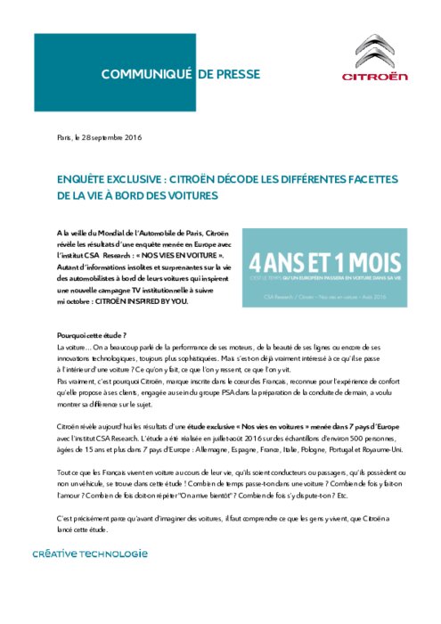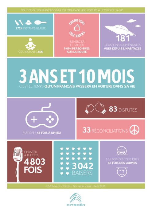A la veille du Mondial de l’Automobile de Paris, Citroën révèle les résultats d’une enquête menée en Europe avec l’institut CSA Research : «NOS VIES EN VOITURE». Autant d’informations insolites et surprenantes sur la vie des automobilistes à bord de leurs voitures qui inspirent une nouvelle campagne TV institutionnelle à suivre mi octobre. De son côté, eBay s’est intéressé – en partenariat avec l’institut IPSOS – à la relation particulière qu’entretiennent les Français avec leur véhicule.