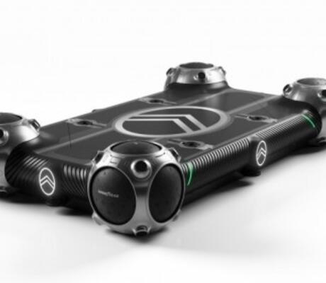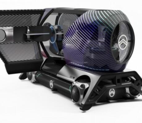 Présenté à Paris, le prototype du "Citroën Skate" vient glisser ses quatre grosses roues sous des modules, conçus par des partenaires, pour les emmener sur des voies dédiées à travers les villes, à 25 kilomètres/heure.