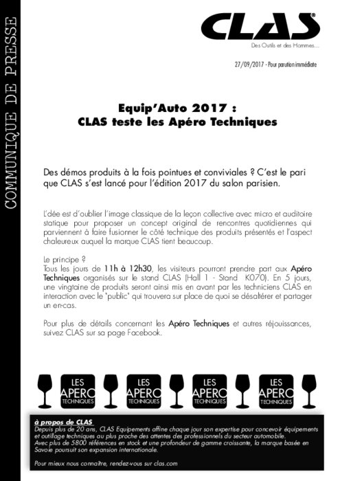 Des démos produits à la fois pointues et conviviales ? C'est le pari que CLAS s'est lancé pour l'édition 2017 du salon parisien. L'dée est d'oublier l'image classique de la leçon collective avec micro et auditoire statique pour proposer un concept original de rencontres quotidiennes qui parviennent à faire fusionner le côté technique des produits présentés et l'aspect chaleureux auquel la marque CLAS tient beaucoup.