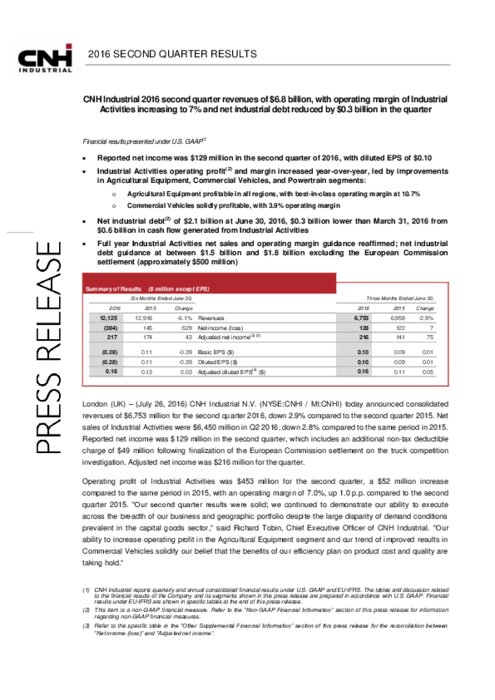 Le directeur exécutif de CNH Industrial, Richard Tobin a salué des résultats "solides" qui ont permis au groupe de confirmer ses objectifs pour 2016.