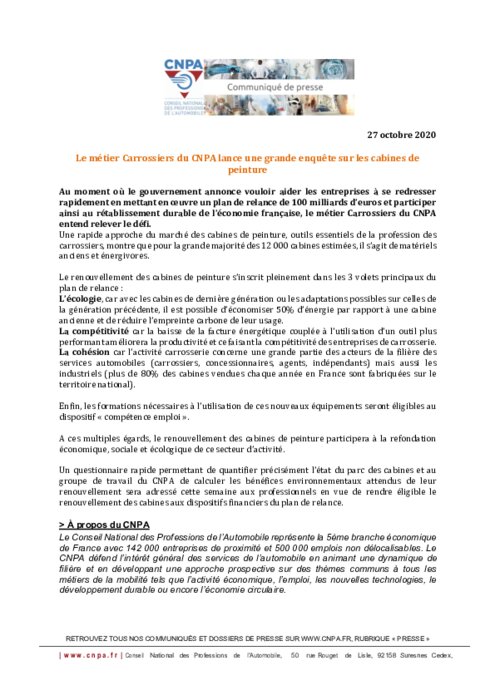 Au moment où le gouvernement annonce vouloir aider les entreprises à se redresser rapidement en mettant en œuvre un plan de relance de 100 milliards d’euros et participer ainsi au rétablissement durable de l’économie française, le métier Carrossiers du CNPA entend relever le défi. Une rapide approche du marché des cabines de peinture, outils essentiels de la profession des carrossiers, montre que pour la grande majorité des 12 000 cabines estimées, il s’agit de matériels anciens et énergivores.