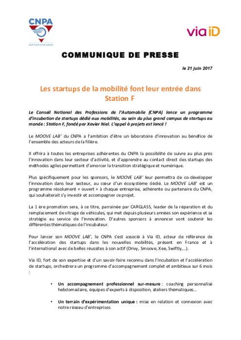 CNPA: les startups de la mobilité entrent dans Station F