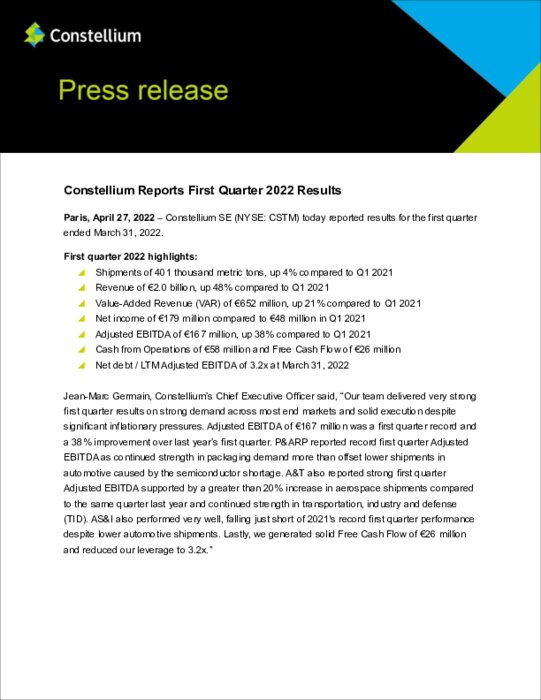 Voir le communiqué détaillé de Constellium ci-dessous (en anglais)