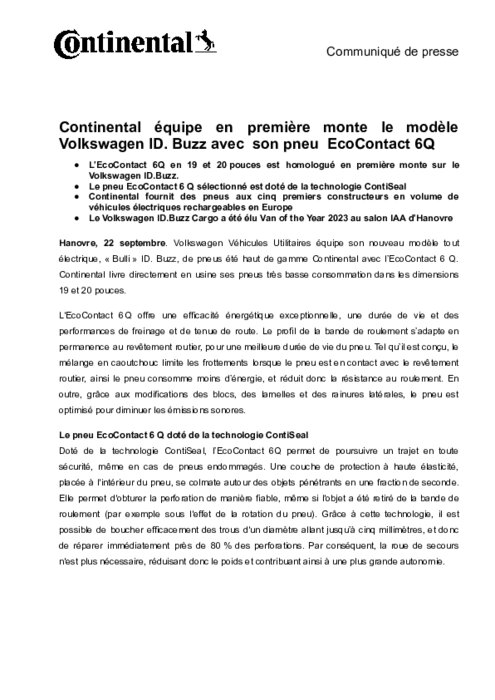 Continental chausse la Volkswagen ID. Buzz avec son pneu EcoContact 6Q