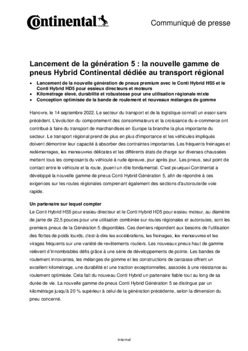 Continental lance sa génération 5 de pneumatiques poids lourds
