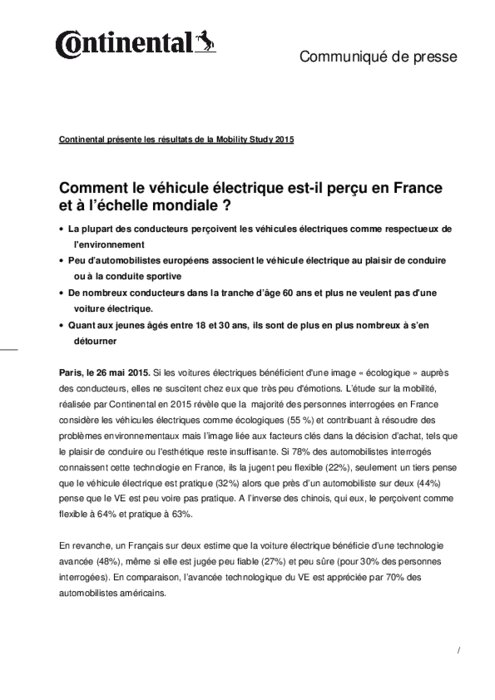 La plupart des conducteurs perçoivent les véhicules électriques comme respectueux de l'environnement. Peu d’automobilistes européens associent le véhicule électrique au plaisir de conduire ou à la conduite sportive. De nombreux conducteurs dans la tranche d’âge 60 ans et plus ne veulent pas d'une voiture électrique. Quant aux jeunes âgés entre 18 et 30 ans, ils sont de plus en plus nombreux à s’en détourner.