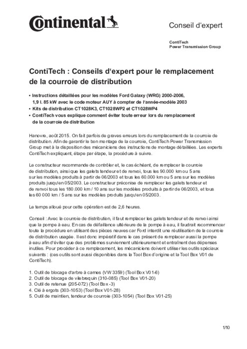 ContiTech: instructions de montage de distribution Galaxy