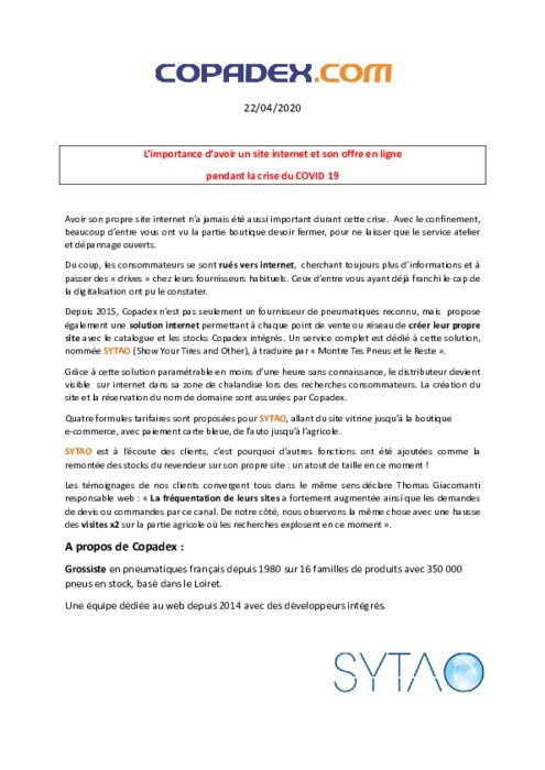 Copadex : l'importance d'un site web pendant la crise du Coronavirus