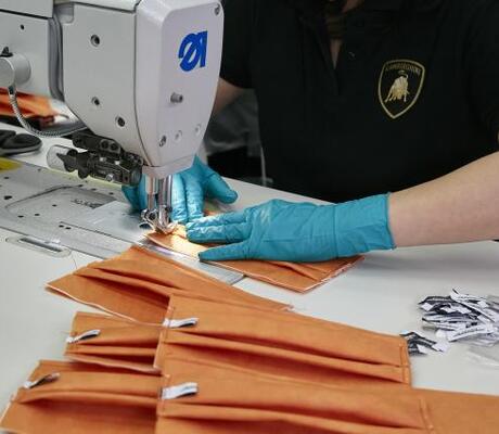La réalisation des masques chirurgicaux "a été confiée à un groupe d'ouvriers et ouvrières spécialisés dans la sellerie, le département chargé de la réalisation des intérieurs et de la personnalisation des Lamborghini". Un millier de masques seront ainsi produits par jour.