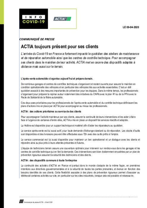 L’arrivée du Covid-19 en France a fortement impacté le quotidien des ateliers de maintenance et de réparation automobile ainsi que les centres de contrôle technique. Pour accompagner ses clients dans le maintien de leur activité, ACTIA met en œuvre des dispositifs adaptés à distance mais aussi sur le terrain.