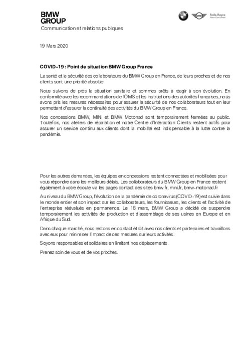 COVID-19 : Point de situation BMW Group France