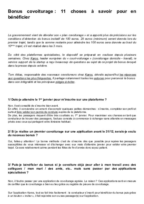 Pour Nicolas Brusson, cofondateur de BlaBlaCar, "le bonus va être une première étape vers un usage plus fréquent. Un conducteur qui choisit de covoiturer régulièrement sur ses trajets du quotidien peut économiser plus de 1000 euros par an".