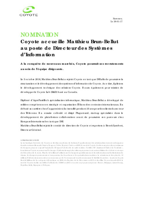Coyote: Matthieu Brun-Bellut nommé au poste de DSI