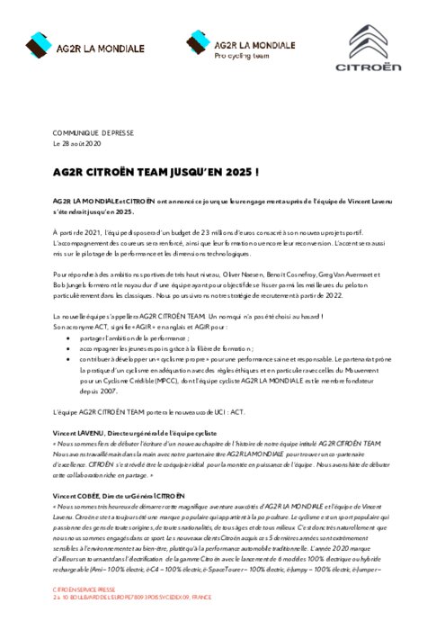 Cyclisme : Citroën s'engage aux côtés d'AG2R pour 5 ans
