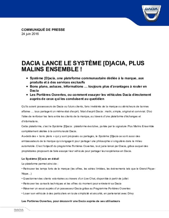 DACIA LANCE LE SYSTÈME [D]ACIA, PLUS MALINS ENSEMBLE !