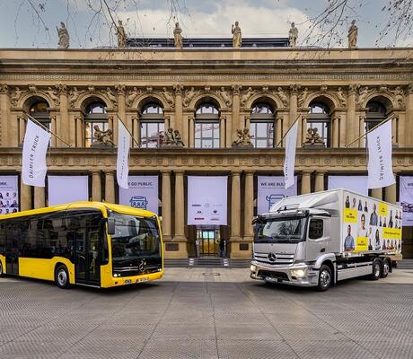 Daimler Truck a lancé en octobre la production de son camion électrique eActros et propose depuis 2018 un bus urbain électrique. Un modèle eActros paradait d'ailleurs vendredi matin devant la bourse de Francfort.