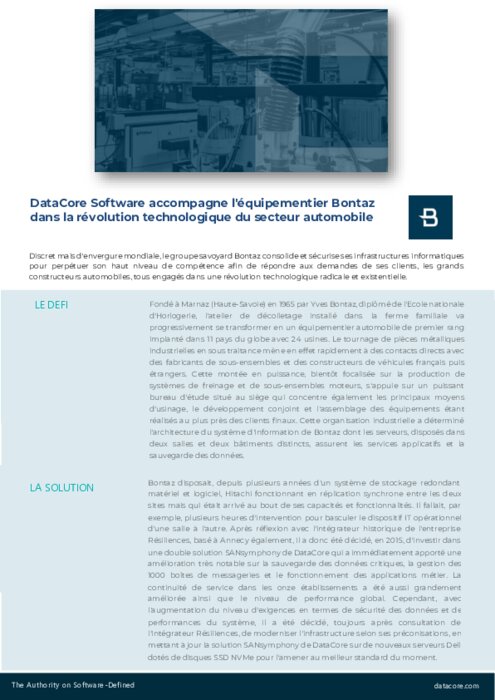 Discret mais d'envergure mondiale, le groupe savoyard Bontaz consolide et sécurise ses infrastructures informatiques pour perpétuer son haut niveau de compétence afin de répondre aux demandes de ses clients, les grands constructeurs automobiles, tous engagés dans une révolution technologique radicale et existentielle.