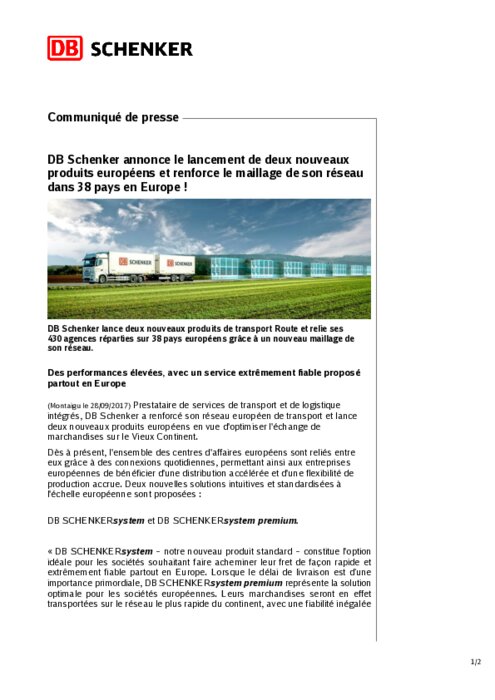 DB Schenker lance deux nouveaux produits de transport Route et relie ses 430 agences réparties sur 38 pays européens grâce à un nouveau maillage de son réseau.