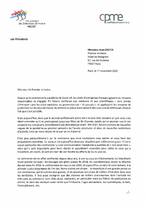 Le CNPA est, à nouveau, co-signataire d'un courrier du MEDEF et de la CPME adressé aujourd'hui au Premier Ministre en ce sens. Vous le retrouverez en pj.