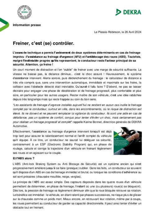 L’avancée technique a permis l’avènement de deux systèmes déterminants en cas de freinage imprévu : l’assistance au freinage d’urgence (AFU) et l’antiblocage des roues (ABS). Toutefois, malgré l’indéniable progrès qu’ils représentent, le conducteur reste l’acteur principal de sa sécurité.