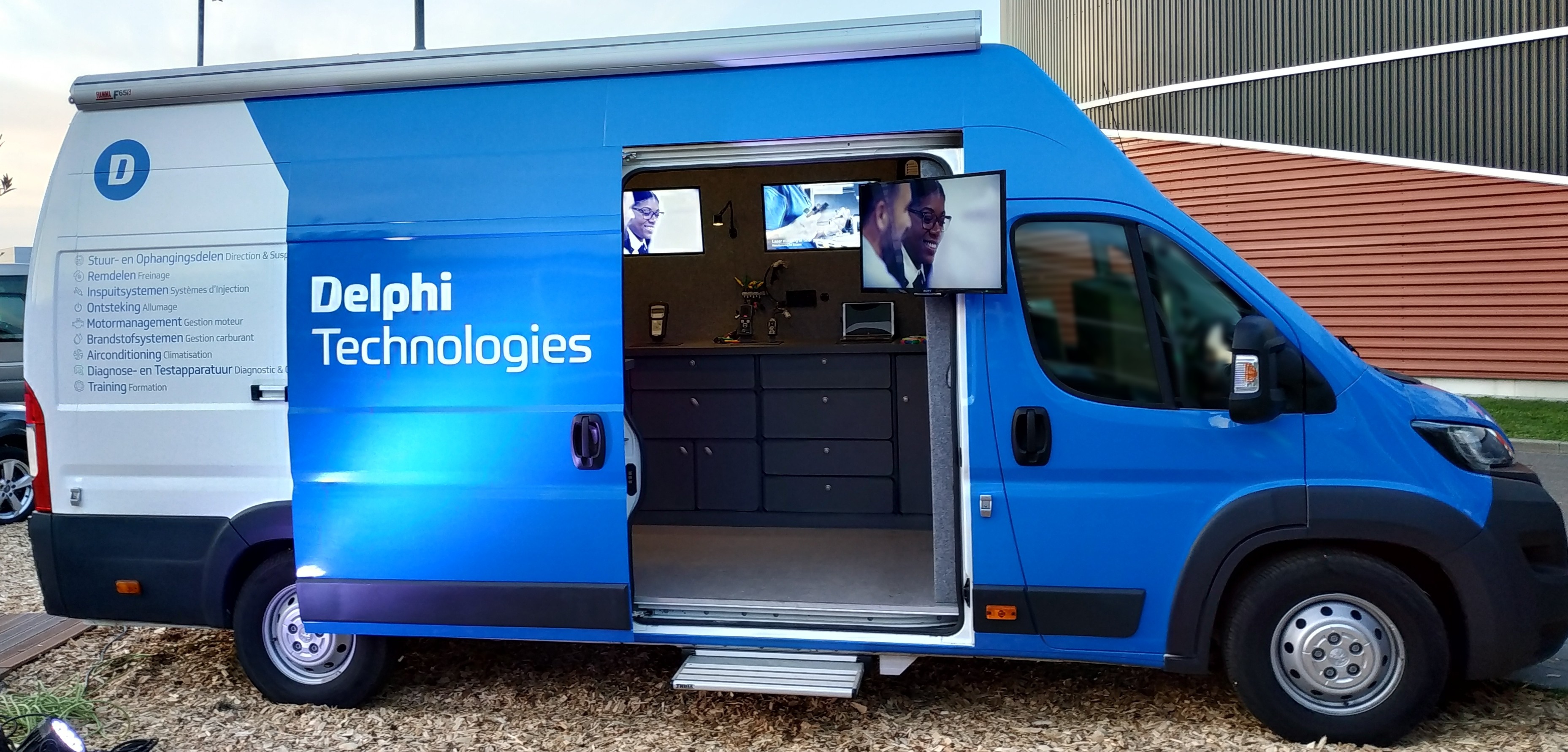Depuis avril, les nouveaux camions techniques " Delphi Technologies Trucks " sillonnent les routes de France et du Benelux pour rendre visite aux garages, participer aux salons régionaux et événements clients. Arborant la nouvelle identité visuelle de l’équipementier, ces véhicules ont pour objectif de présenter les technologies avancées de propulsion, de gestion moteur et les dernières solutions première monte et rechange de Delphi Technologies.