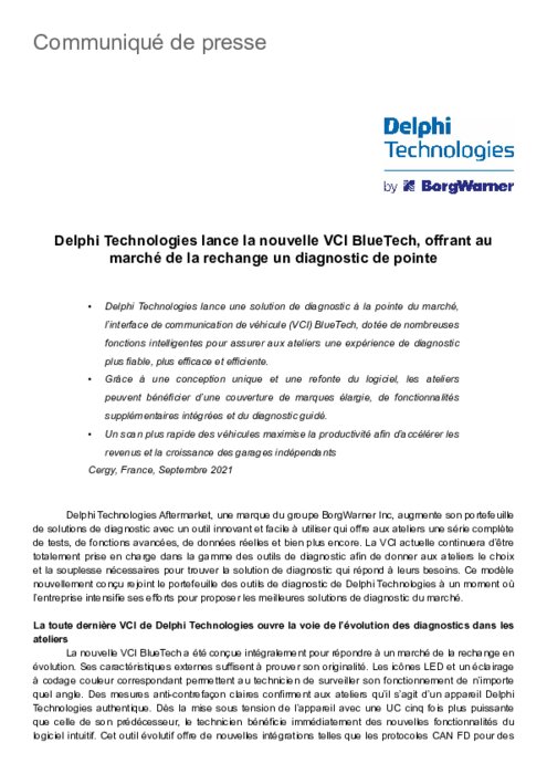 Delphi Technologies lance la nouvelle VCI BlueTech