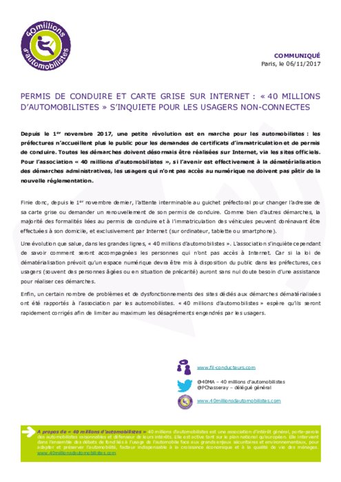 Depuis le 1er novembre 2017, une petite révolution est en marche pour les automobilistes : les préfectures n'accueillent plus le public pour les demandes de certificats d'immatriculation et de permis de conduire. Toutes les démarches doivent désormais être réalisées sur Internet, via les sites officiels. Pour l'association 40MA, si l'avenir est effectivement à la dématérialisation des démarches administratives, les usagers qui n'ont pas accès au numérique ne doivent pas en pâtir.
