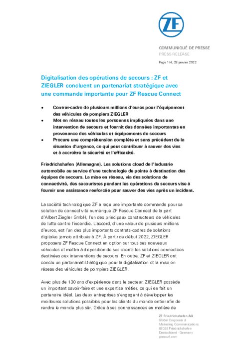 Des véhicules d'incendie Ziegler équipés avec ZF Rescue Connect