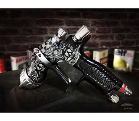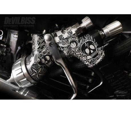 Les graphistes de chez PeintureVoiture.fr ont travaillé sur le design orienté Old School, Custom, Bike Builders ou garage américain pour pouvoir vous proposer aujourd'hui le 1er pistolet en série très limitée du célèbre GTI Pro Lite de chez Devilbiss, en version Kustom Kulture.