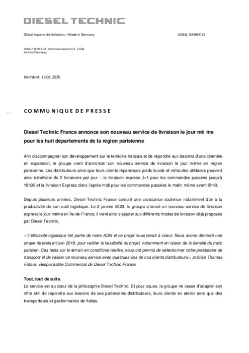 Le groupe vient d’annoncer son nouveau service de livraison le jour même en région parisienne. Les distributeurs ainsi que leurs clients réparateurs poids lourds et véhicules utilitaires peuvent ainsi bénéficier de 2 livraisons par jour – la livraison express J+1 pour les commandes passées jusqu’à 18h30 et la livraison Express dans l’après-midi pour les commandes passées le matin même avant 9h40.