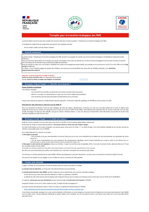 • le fichier excel "ADEME_Tremplin transition écologique" renseigné,