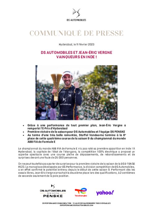 Ds automobiles et jean-éric vergne vainqueurs en inde