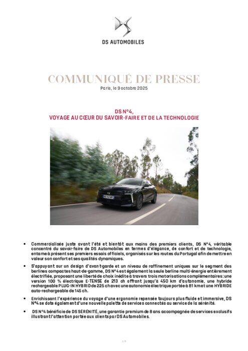 Commercialisée juste avant l’été et bientôt aux mains des premiers clients, DS N°4, véritable concentré du savoir-faire de DS Automobiles en termes d’élégance, de confort et de technologie, entame à présent ses premiers essais officiels, organisés sur les routes du Portugal afin de mettre en valeur son confort et ses qualités dynamiques.