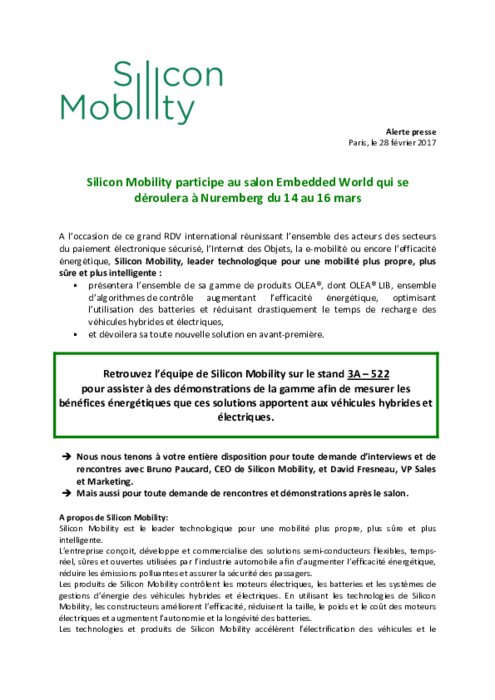 A l'occasion de ce grand RDV international réunissant l'ensemble des acteurs des secteurs du paiement électronique sécurisé, l'Internet des Objets, la e-mobilité ou encore l'efficacité énergétique, Silicon Mobility, leader technologique pour une mobilité plus propre, plus sûre et plus intelligente.