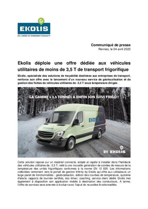 Avec le lancement d’un nouveau service de géolocalisation et de gestion des flottes de véhicules utilitaires de -3,5 T sous température dirigée.