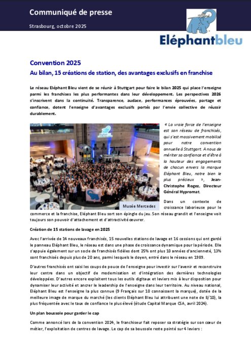 Le réseau Eléphant Bleu vient de se réunir à Stuttgart pour faire le bilan 2025 qui place l’enseigne parmi les franchises les plus performantes dans leur développement. Les perspectives 2026 s’inscrivent dans la continuité. Transparence, audace, performances éprouvées, partage et confiance, dotent l’enseigne d’avantages exclusifs portés par l’envie collective de réussir durablement.