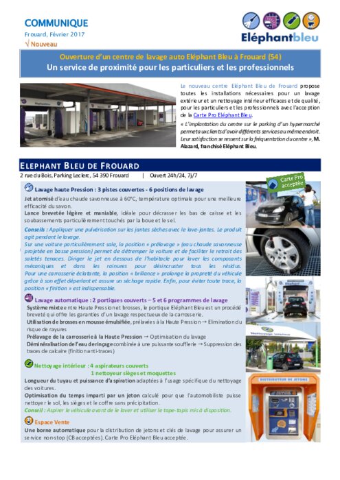Le nouveau centre Eléphant Bleu de Frouard propose toutes les installations nécessaires pour un lavage extérieur et un nettoyage intérieur efficaces et de qualité, pour les particuliers et les professionnels avec l’acception de la Carte Pro Eléphant Bleu.
