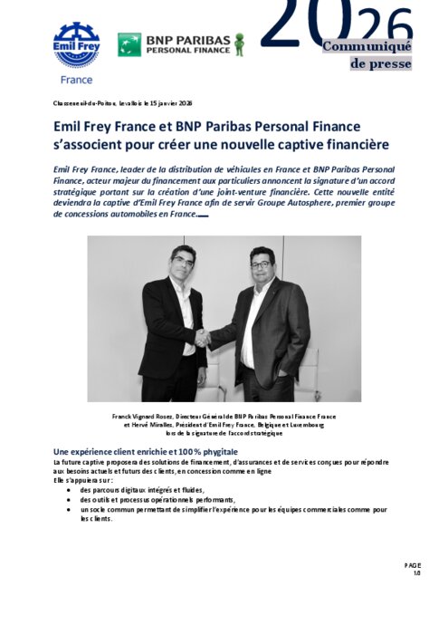 Une équipe projet commune, déjà constituée, conçoit actuellement l’ensemble de l’offre afin de préparer le lancement opérationnel de la joint-venture. Celui-ci est prévu en janvier 2027, sous réserve de l’approbation de l’Autorité de Contrôle Prudentiel et de Résolution (ACPR). La coentreprise aura ensuite pour mission de développer la gamme de produits d’Autosphere Financement à destination des clients du Groupe Autosphere.