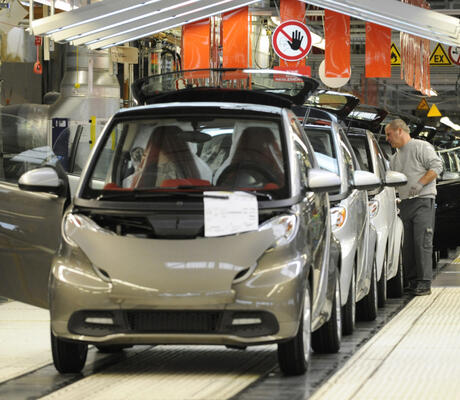 Smart France produit à Hambach quelque 100.000 véhicules biplaces dans son usine située aux confins de la Lorraine, de l'Alsace et de l'Allemagne.