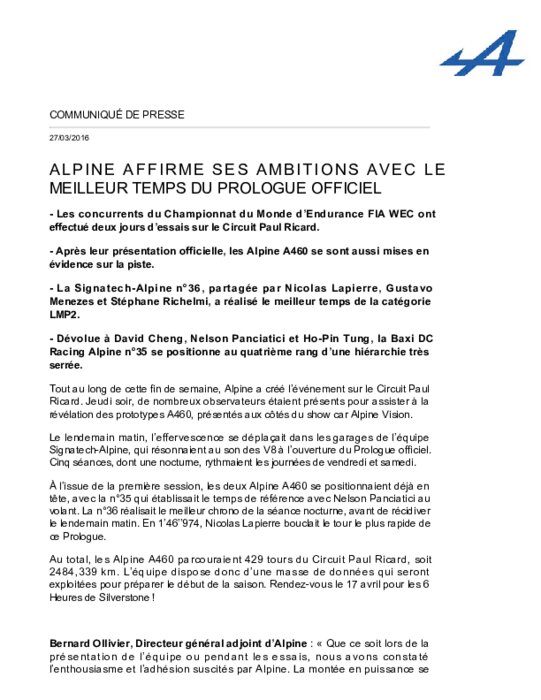 Les concurrents du Championnat du Monde d’Endurance FIA WEC ont effectué deux jours d’essais sur le Circuit Paul Ricard. Après leur présentation officielle, les Alpine A460 se sont aussi mises en évidence sur la piste. La Signatech-Alpine n°36, partagée par Nicolas Lapierre, Gustavo Menezes et Stéphane Richelmi, a réalisé le meilleur temps de la catégorie LMP2.