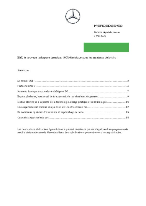 Constructeurs 16 mai 2023 - 14:01 Version 100% électrique du ludospace Classe T, le nouvel EQT séduit par sa polyvalence et ses équipements haut de gamme. Idéal pour une utilisation au quotidien grâce à un moteur électrique moderne et des options de charge flexibles. PDF (277 Ko) Télécharger