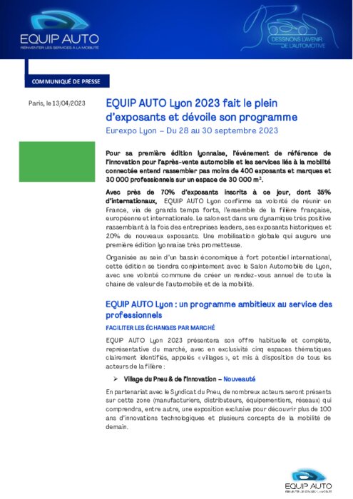 Pour sa première édition lyonnaise, l’événement de référence de l’innovation pour l’après-vente automobile et les services liés à la mobilité connectée entend rassembler pas moins de 400 exposants et marques et
