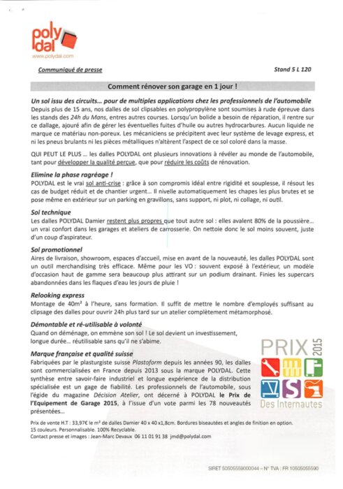 Polydal est le vrai sol anti-crise: grâce à son compromis idéal entre rigidité et souplesse, il réduit les cas de budget réduit et de chantier urgent: il nivelle automatiquement les chappes les plus brutes et se pose même sur un extérieur sur un parking en gravillons...