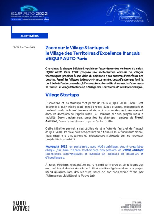 Equip Auto : Zoom sur le Village Startups et ldes Territoires